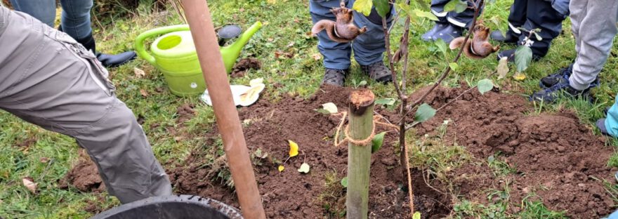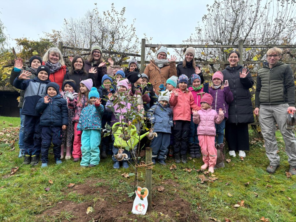 Im Anschluss wurde noch im Rahmen der Baumpflanz-Challenge ein Apfelbaum im Vereinsgarten gepflanzt und sich mit leckeren Apfelpfannkuchen gestärkt.