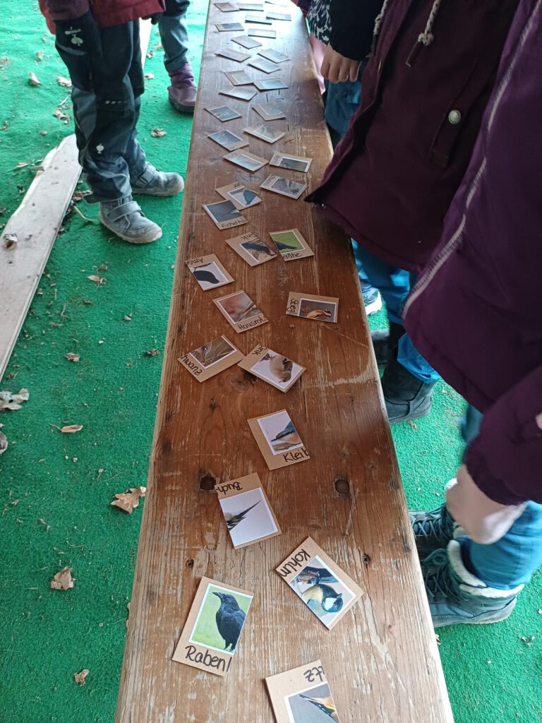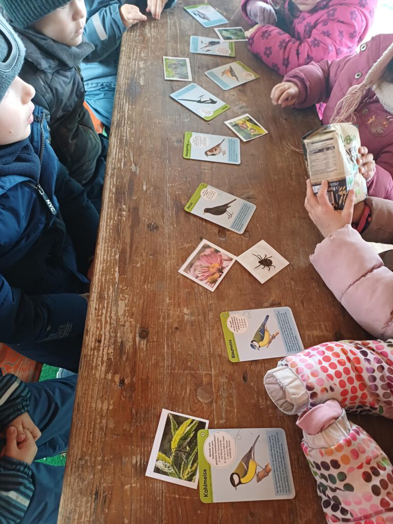 Auch erfuhren die Kids etwas über die Nahrungsbeziehung (Vogel – Insekt – Pflanzen) und wie unterschiedlich Amsel, Rotkehlchen, Blau- und Kohlmeise, Kleiber und Co. singen. Ein kleines Vogelmemory rundete unsere „Vogel-Gruppenstunde“ ab.