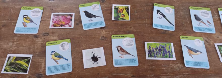 Auch erfuhren die Kids etwas über die Nahrungsbeziehung (Vogel – Insekt – Pflanzen) und wie unterschiedlich Amsel, Rotkehlchen, Blau- und Kohlmeise, Kleiber und Co. singen. Ein kleines Vogelmemory rundete unsere „Vogel-Gruppenstunde“ ab.