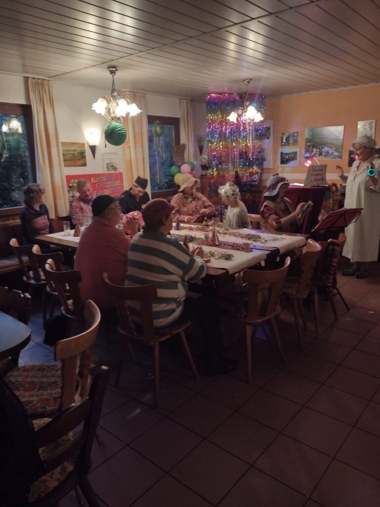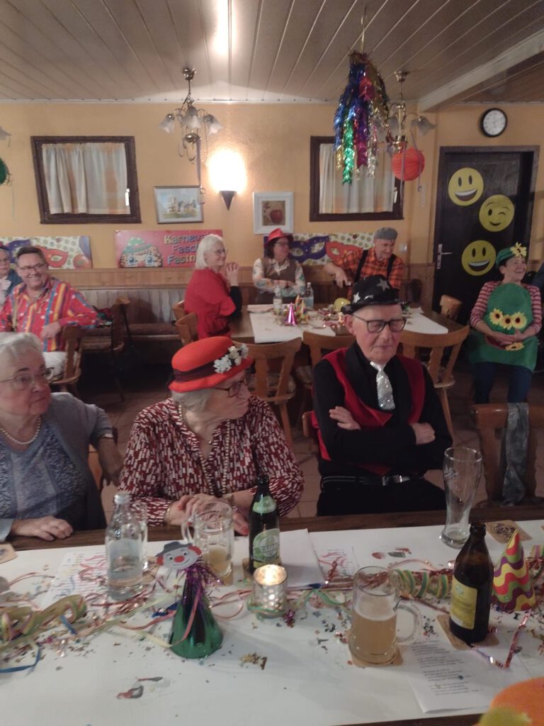 Am Faschingsdienstag lud der Verein dann zu seiner Faschingsgaudi in die Laube ein. Bei lustigen Büttenreden, Faschingsmusik und leckerem Essen wurde auch hier ordentlich die 5. Jahreszeit gefeiert.